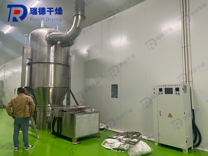 The powder material used for granulation is placed into a fluidized bed, and the material powder particles are in a circular fluidized state in the raw material container. They are preheated and mixed by purified heated air, and the adhesive solution is atomized and sprayed in, causing several particles to aggregate into clusters containing adhesive. Due to the continuous drying of the material by the hot air, the moisture in the clusters evaporates, and the adhesive solidifies. This process is repeated continuously to form ideal and uniform multi microporous spherical particles.