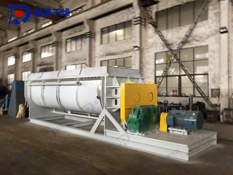 Wedge shaped hollow blades are densely arranged on the hollow shaft, and the heat medium flows through the blades through the hollow shaft. The heat transfer area within a unit effective volume is large, and the temperature of the heat medium ranges from -40 ℃ to 320 ℃. It can be steam or liquid, such as hot water, thermal oil, etc. Indirect conduction heating does not carry away heat with air, and the heat is used to heat the material. The heat loss is only the heat dissipation to the environment through the insulation layer of the device body. The wedge-shaped blade heat transfer surface has self-cleaning function. The relative motion between the material particles and the wedge-shaped surface produces a scrubbing effect, which can wash away the attached material on the wedge-shaped surface and maintain a clean heat transfer surface during operation. The shell of the blade dryer is Ω - shaped, and generally two to four hollow mixing shafts are arranged inside the shell. The shell has a sealed end cover and an upper cover to prevent material dust leakage and fully exert its function. The heat transfer medium flows through the shell jacket and hollow stirring shaft through the rotating joint. The hollow stirring shaft has different internal structures according to the type of heat medium to ensure the best heat transfer effect.