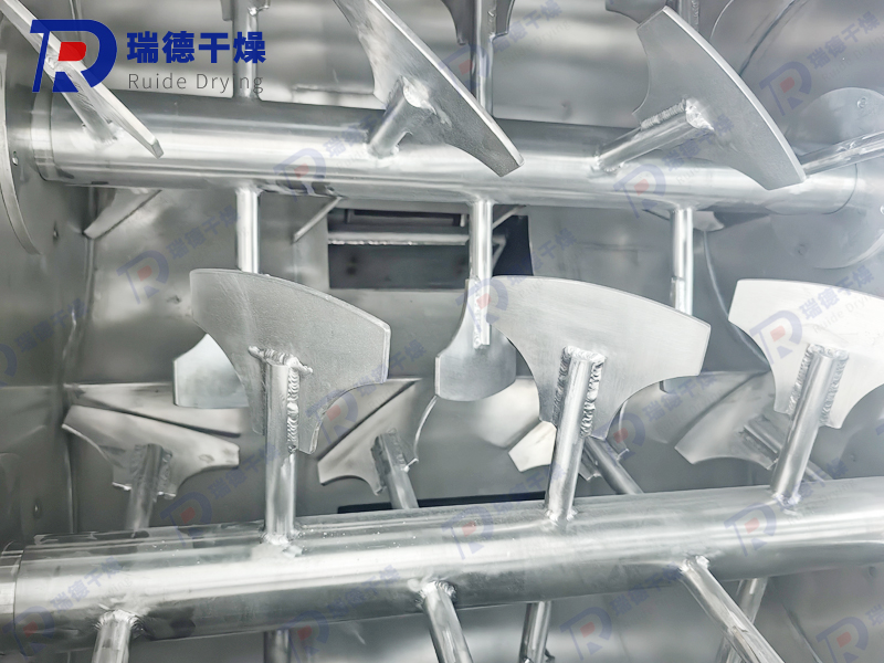 This series of mixers is characterized by strong and efficient mixing, with two horizontal drum bodies rotating at the same speed in reverse. The specially arranged blades on top ensure that the material moves radially, circumferentially, and axially in three directions, forming a composite cycle and achieving uniform mixing in a very short time.