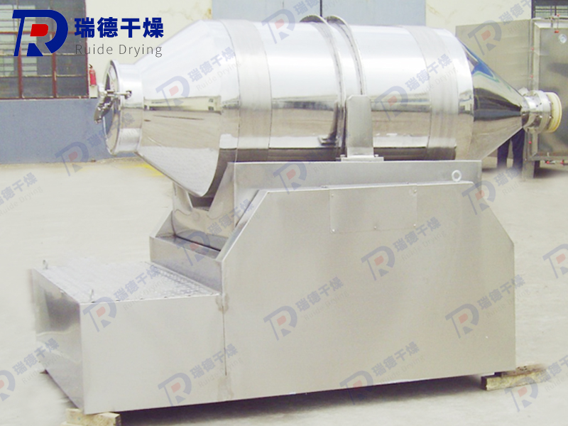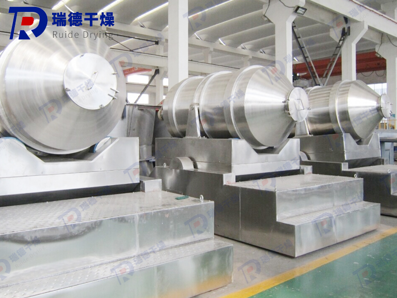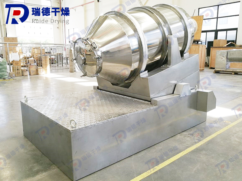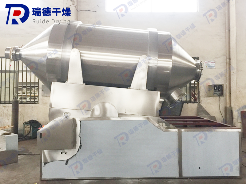 EYH系列二維運動混合機的轉筒可同時進行二個運動,一個為轉筒的轉動,另一個為轉筒隨擺動架的擺動。被混合物料在轉筒內隨轉筒轉動、翻轉、混合的同時,又隨轉筒的擺動而發生左右來回的摻混運動,在這兩個運動的共同作用下,物料在短時間內得到充分的混合。EYH二維混料機適合所有粉、粒狀物料的混合。