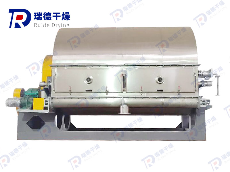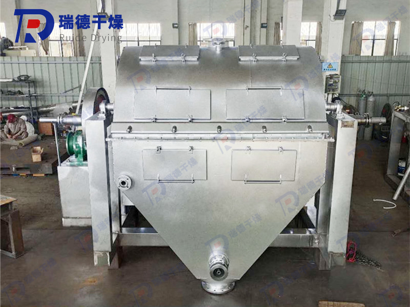 物料被置于儲(chǔ)料槽內(nèi),通過(guò)滾筒轉(zhuǎn)動(dòng)帶動(dòng)物料粘在到冷卻夾套的滾筒表面而形成薄膜,在滾筒轉(zhuǎn)動(dòng)一圈的過(guò)程中冷卻結(jié)晶成片狀粉體,再通過(guò)卸料刮刀片刮下,經(jīng)螺旋輸送物料完成對(duì)物料的收集。