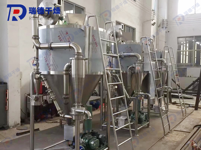 RDZYPW系列中藥浸膏噴霧干燥機是吸收國外技術開發的適用于熔點低、含糖高的中藥產品的干燥設備,并具有不粘壁、物料不焦化、不易吸潮等特點。該裝置根據干燥產品的特點和性質確定噴霧干燥的工藝條件,自動化程度高,操作方便,符合GMP要求。該裝置的成功開發,解決了多年來許多熔點低、含糖高的中藥產品不能用噴霧干燥的技術難點,也是對噴霧干燥在中藥制藥中的應用技術研究的新發展。